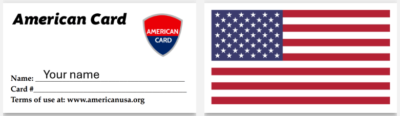 (renew annually).(For American citizens only). and receive your own, “American Card”. *Membership dues benefit American USA Outreach community activities*.